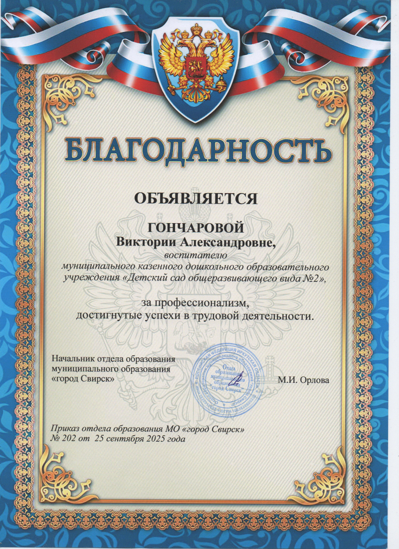 - Благодарственные письма, грамоты, сертификаты и др.